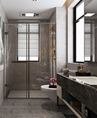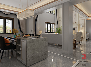 將窄長空間合理利用劃分為中西廚。廚房餐廳南北相連就餐、使用便利。打通了臥室陽臺門窗,改為推拉門增加了臥室的采光度豪華套件,區(qū)域劃分明確,動(dòng)靜分離衣帽間與衛(wèi)生間分離。衣帽間劃分為男士衣帽間與女士衣帽間