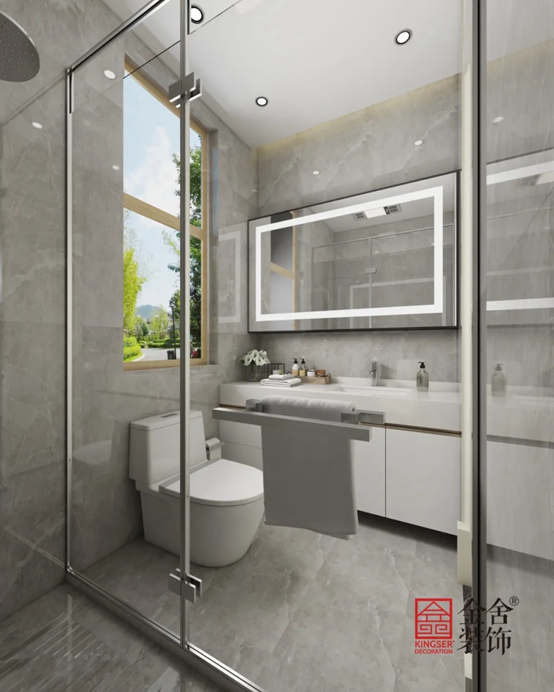 減少衛(wèi)生間的濕區(qū)面積,最大程度控制會(huì)變滑的地面區(qū)域,最直接的方式就是做一個(gè)干濕分離的衛(wèi)生間。